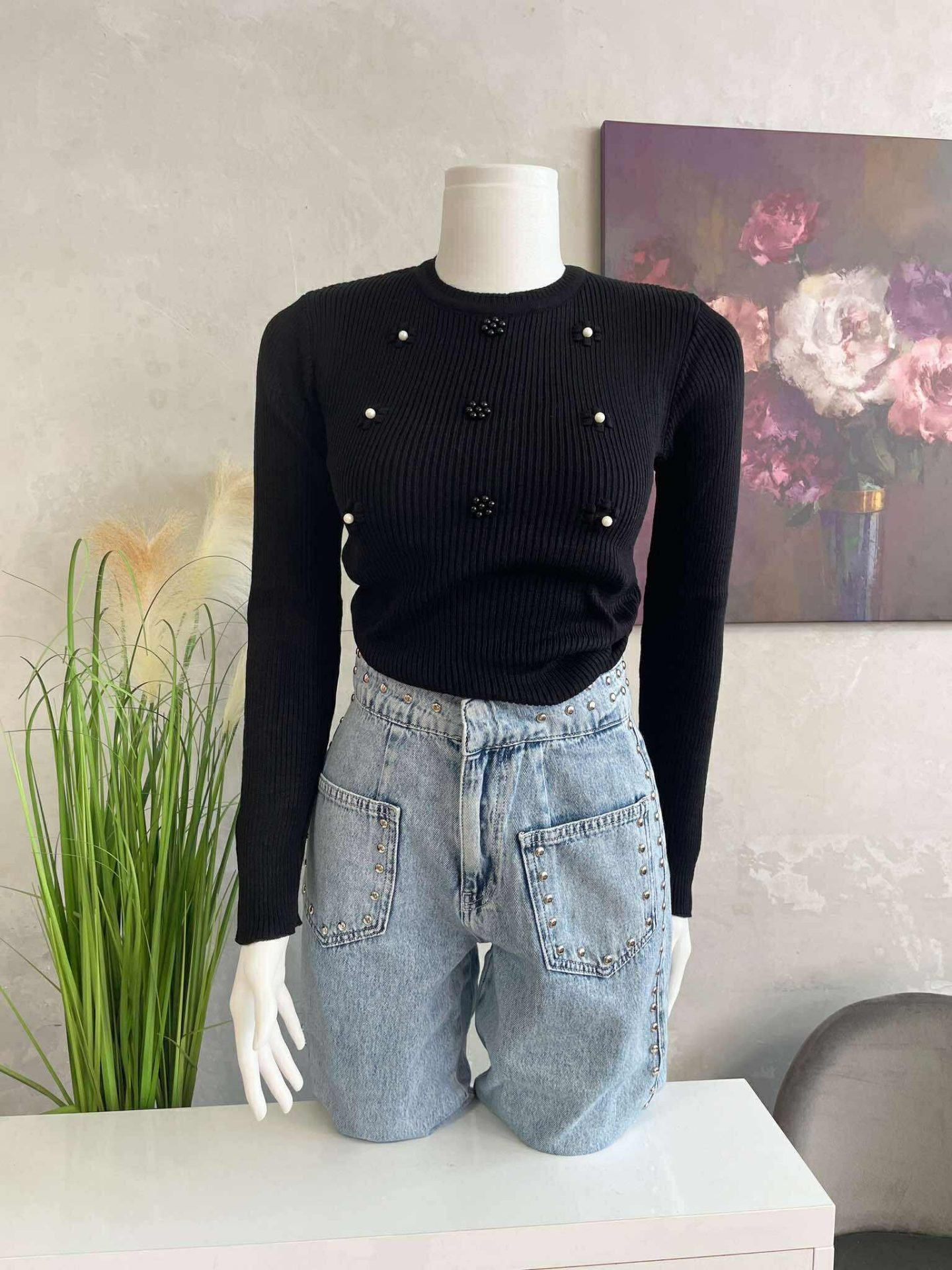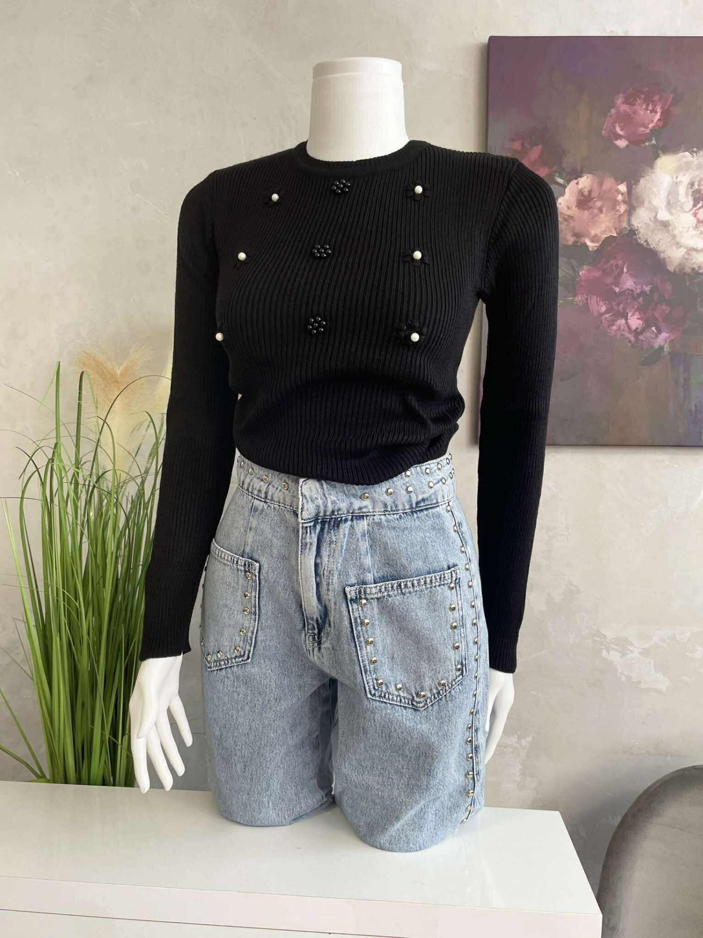 Кройка: Кройката е слим, декорирана с перлички