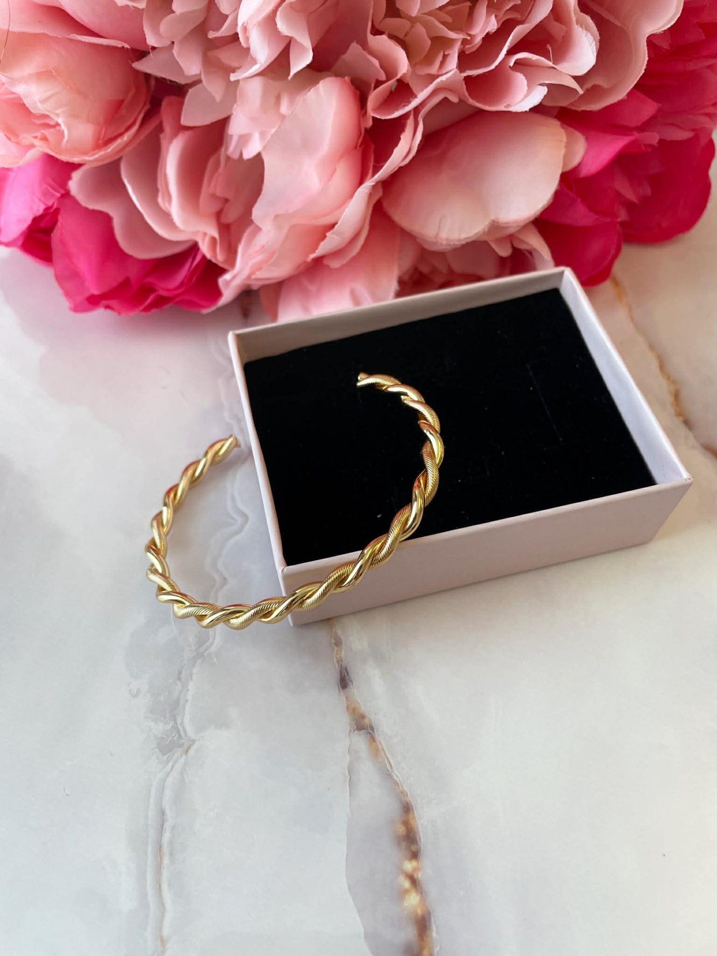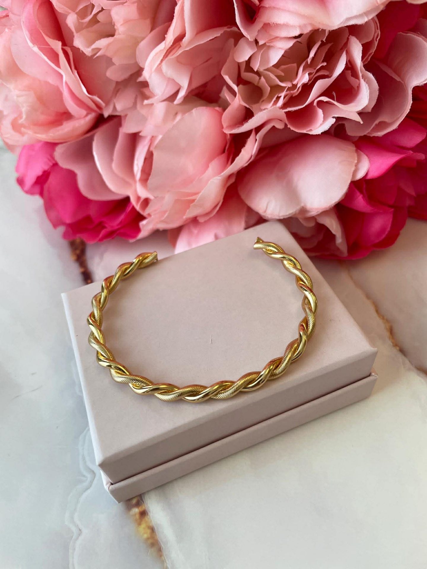 Дизайн: Цвят метал – златист, коригираща се твърда гривна