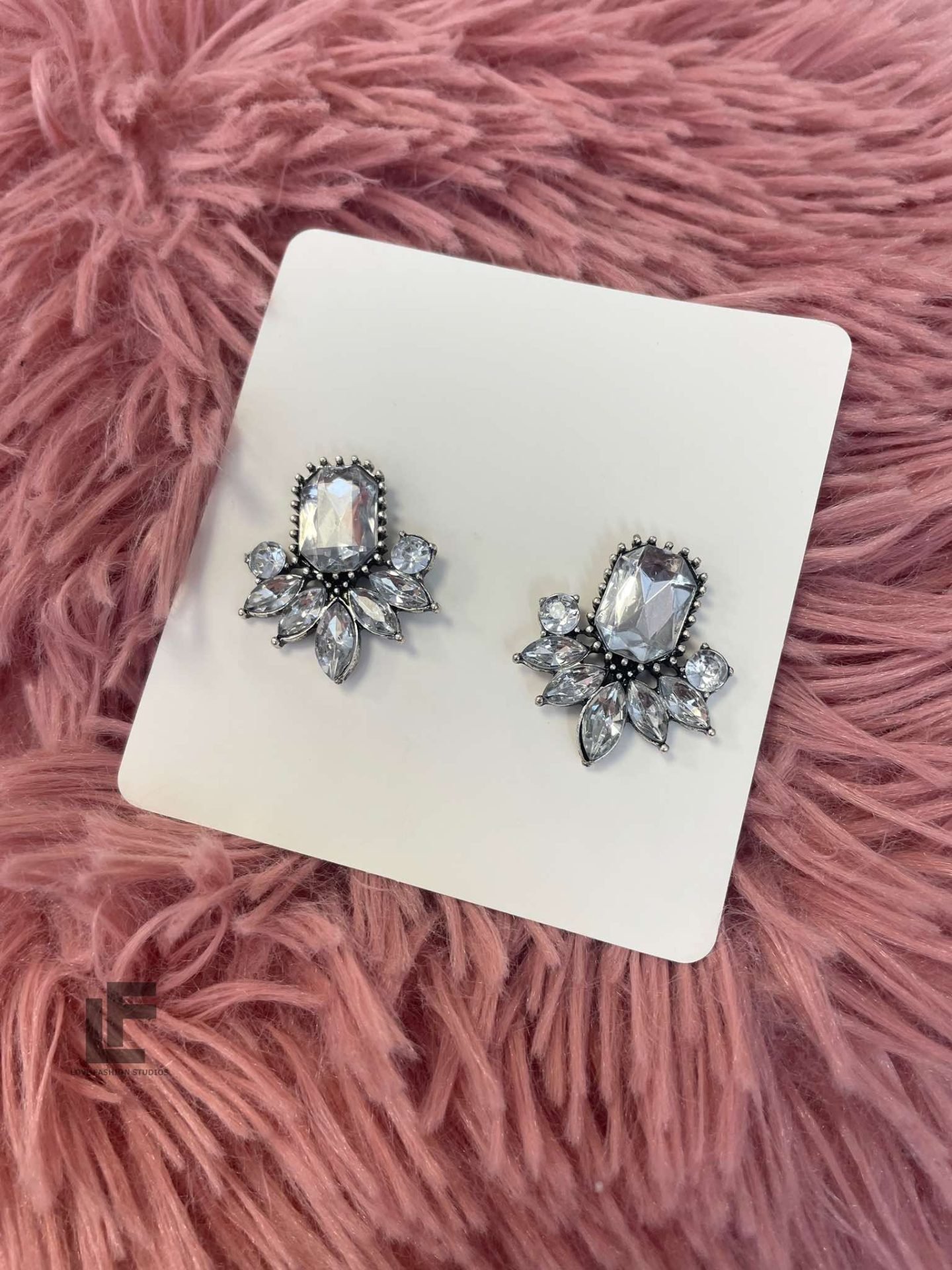 Дизайн: Oversize, сребристи с бели камъни